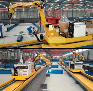 Tekla model input loading→Tekla model identification→Select weld seams, choose draft, automatic equip with welding parameters→Welding parameters confirmation→Camera & Laser find the real weld seams’ location→Automatic welding process